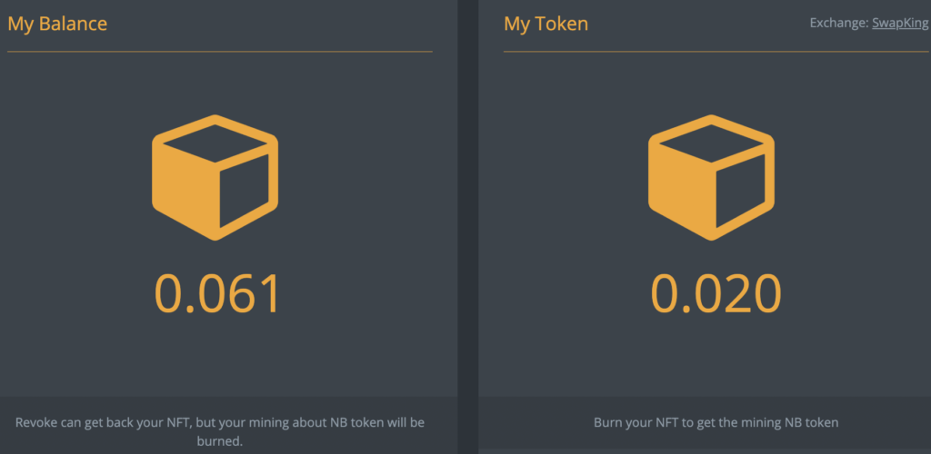 Miningにシングルカードをつっこめば、NBトークンを稼いでくれます